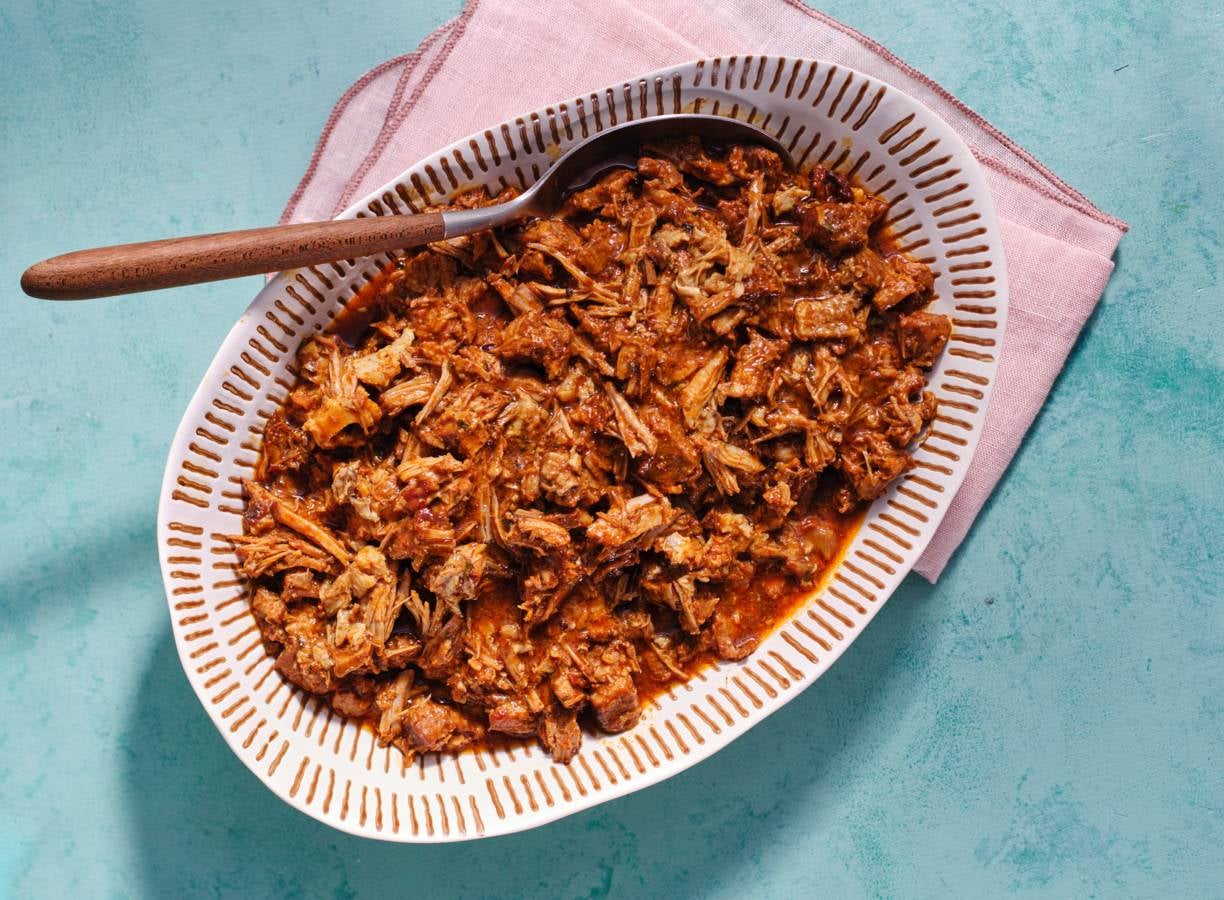 Een slowcooker is ideaal voor het langzaam stoven van bijvoorbeeld vlees. Zo ook voor deze pulled pork, die je in dit recept maakt van schouderkarbonade in plaats van procereur.