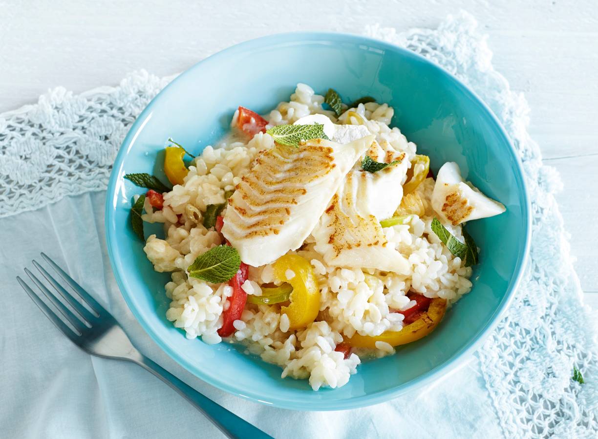De delicate smaak van de schelvis maakt de risotto extra bijzonder.