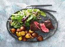 Biefstuk met bonen-radijssalade & gemengde aardappeltjes