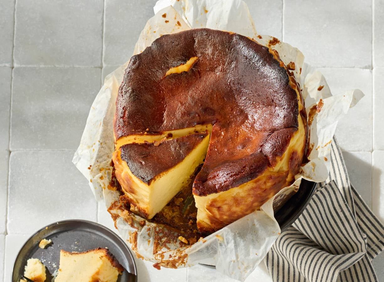 De San Sebastian cheesecake wordt ook wel de Burnt Basque cheesecake genoemd. Waarom? Hij wordt donkerbruin gebakken aan de bovenkant voor een gekarameliseerde smaak. Dit wil je.