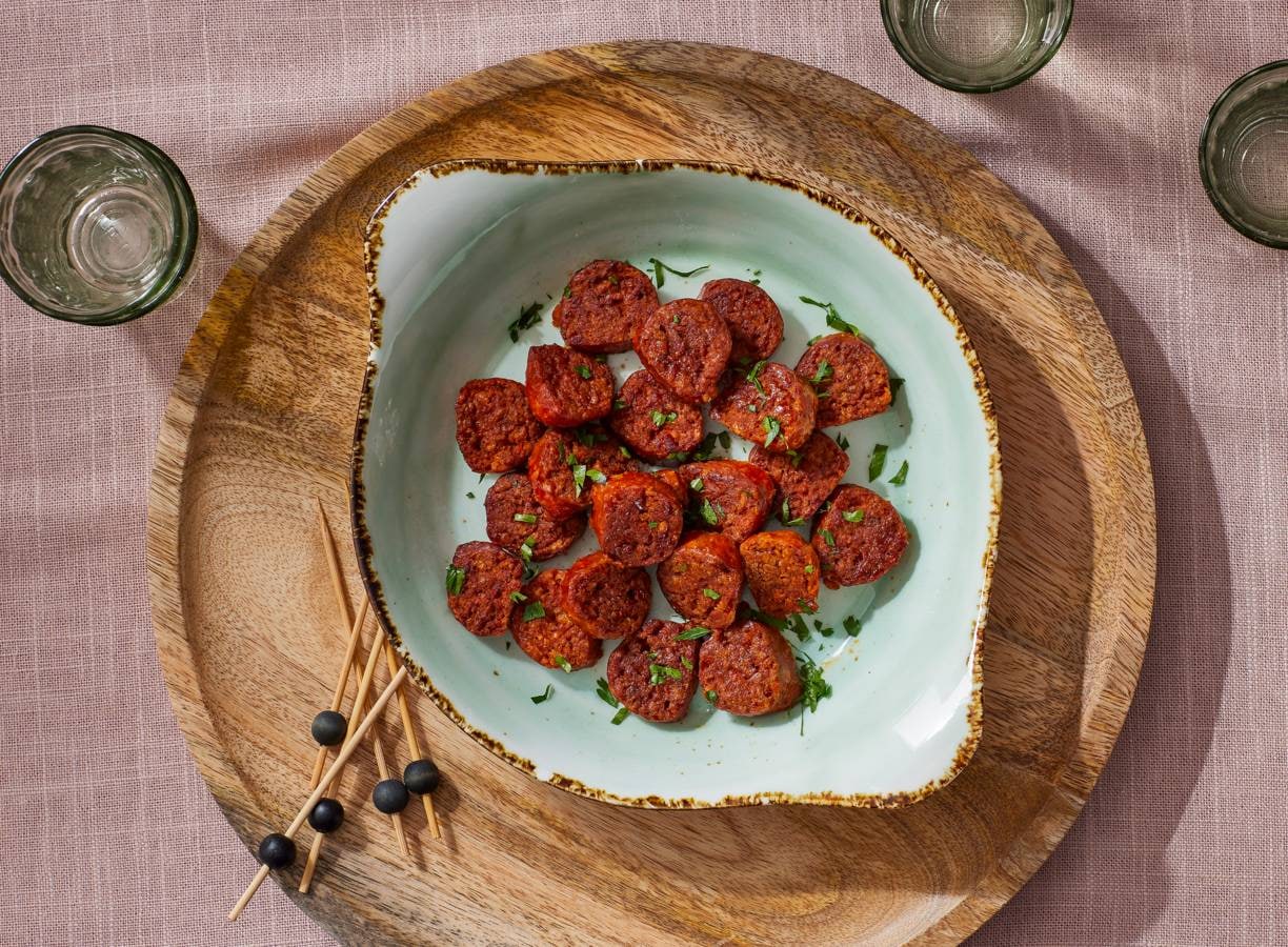 Vegan chorizo? Ja zeker! Deze knapperige lekkernij is het ideale borrelhapje voor iedereen en past goed bij een vegan tapas-avondje.