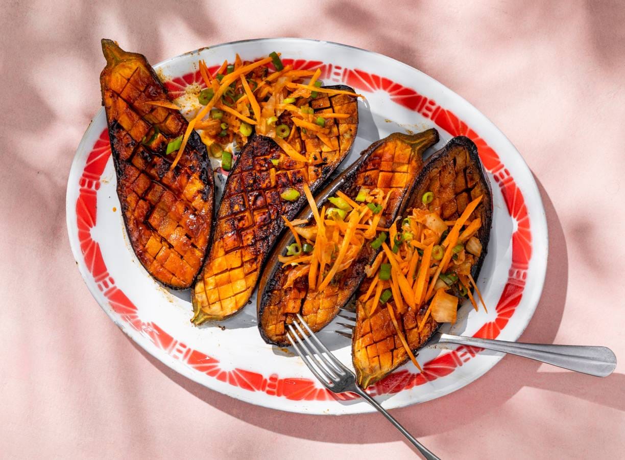 Hot en spicy! Geef je BBQ wat meer pit door deze aubergines met gochujangsaus te bereiden. Serveer met een zelfgemaakte kimchisalade en bestrooi eventueel met sesamzaadjes.