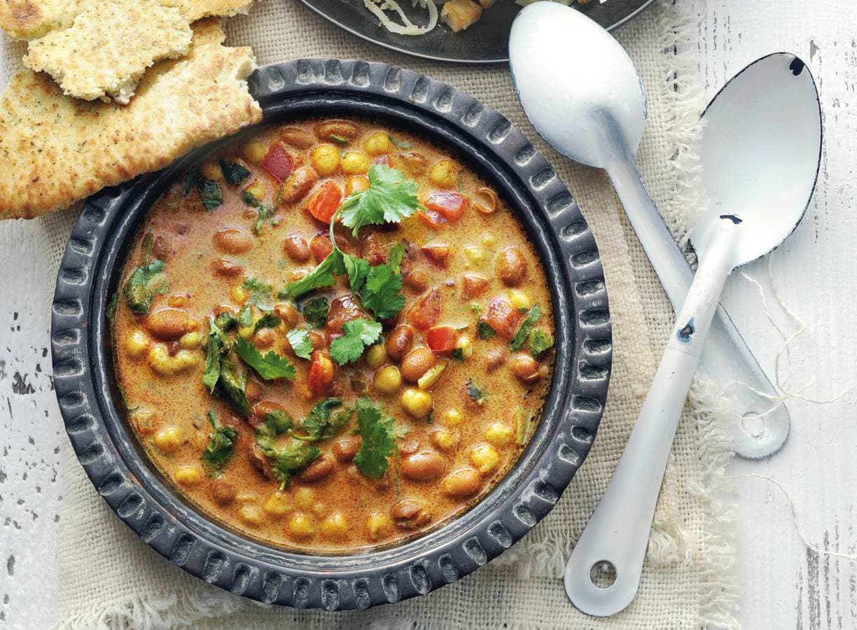 Holland ontmoet India in deze soep met bruine bonen, currypasta en kokosmelk.