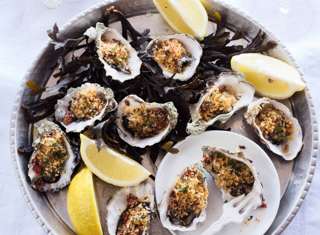 Gratineren is een klassieke manier om oesters te bereiden. Lekker met een krokantje van pittige pepperoni en knoflook.