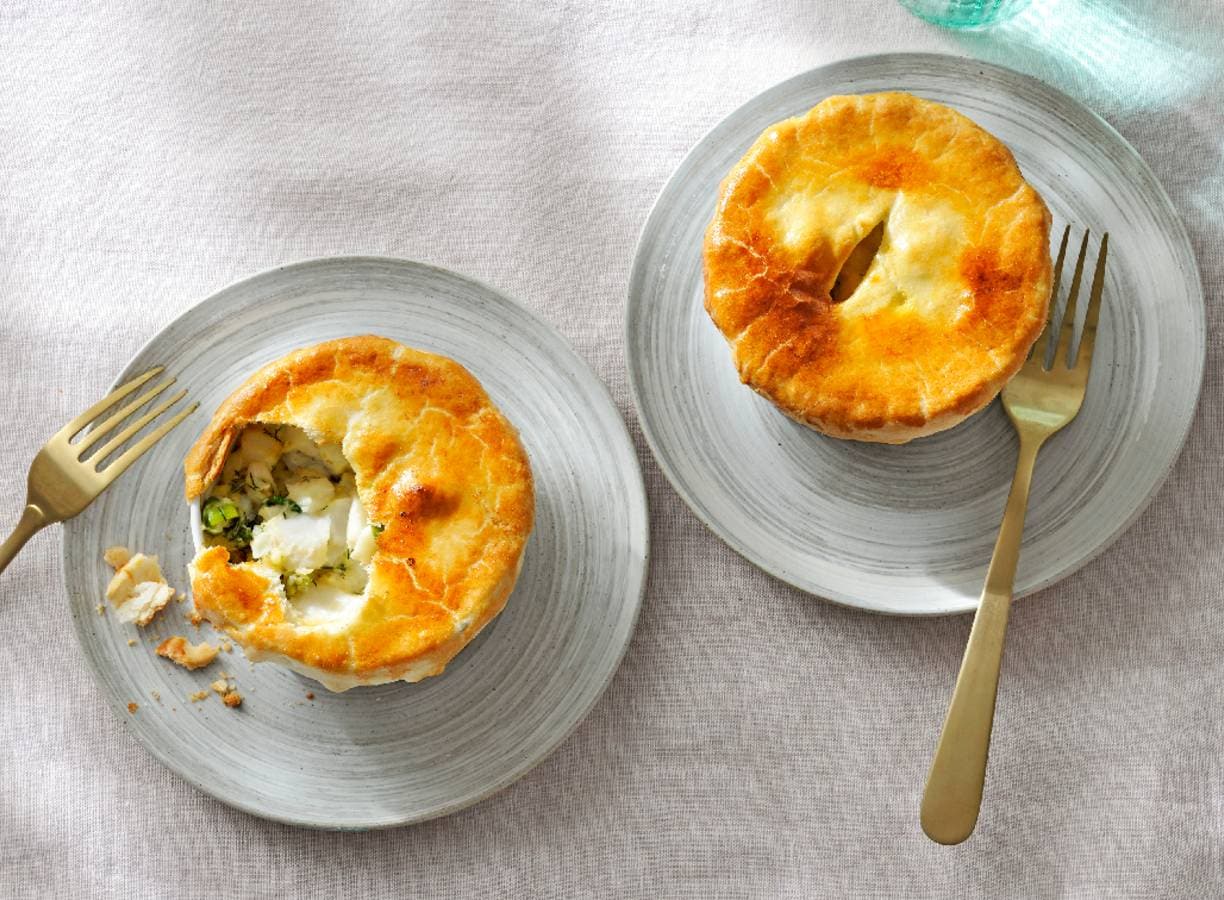 Bak de fish pies in 5-7 min. knapperig en gaar. Serveer meteen.