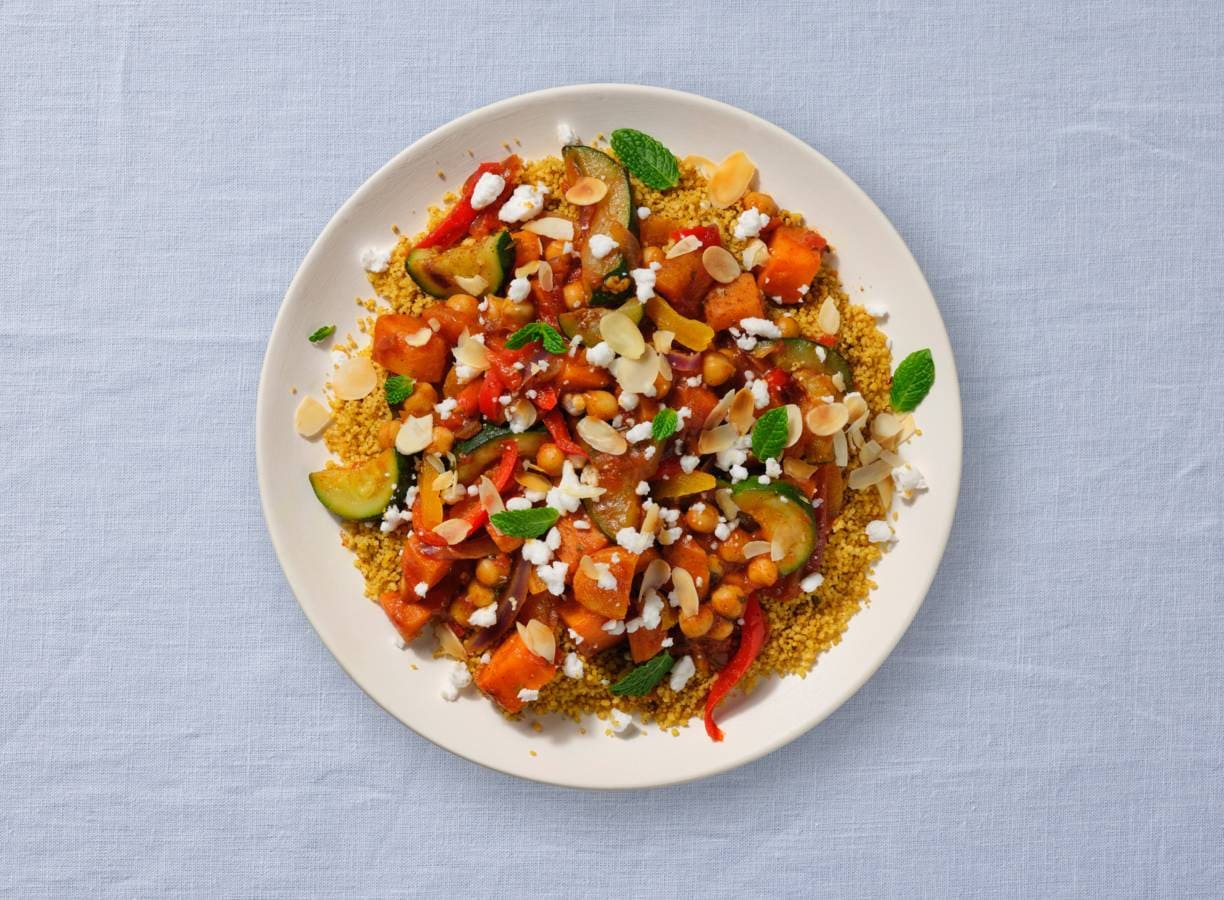 Met een heerlijke kruidenmix, groenten en tomatensaus maak je in een handomdraai een tajine met couscous. En dat vind je in dit verspakket!