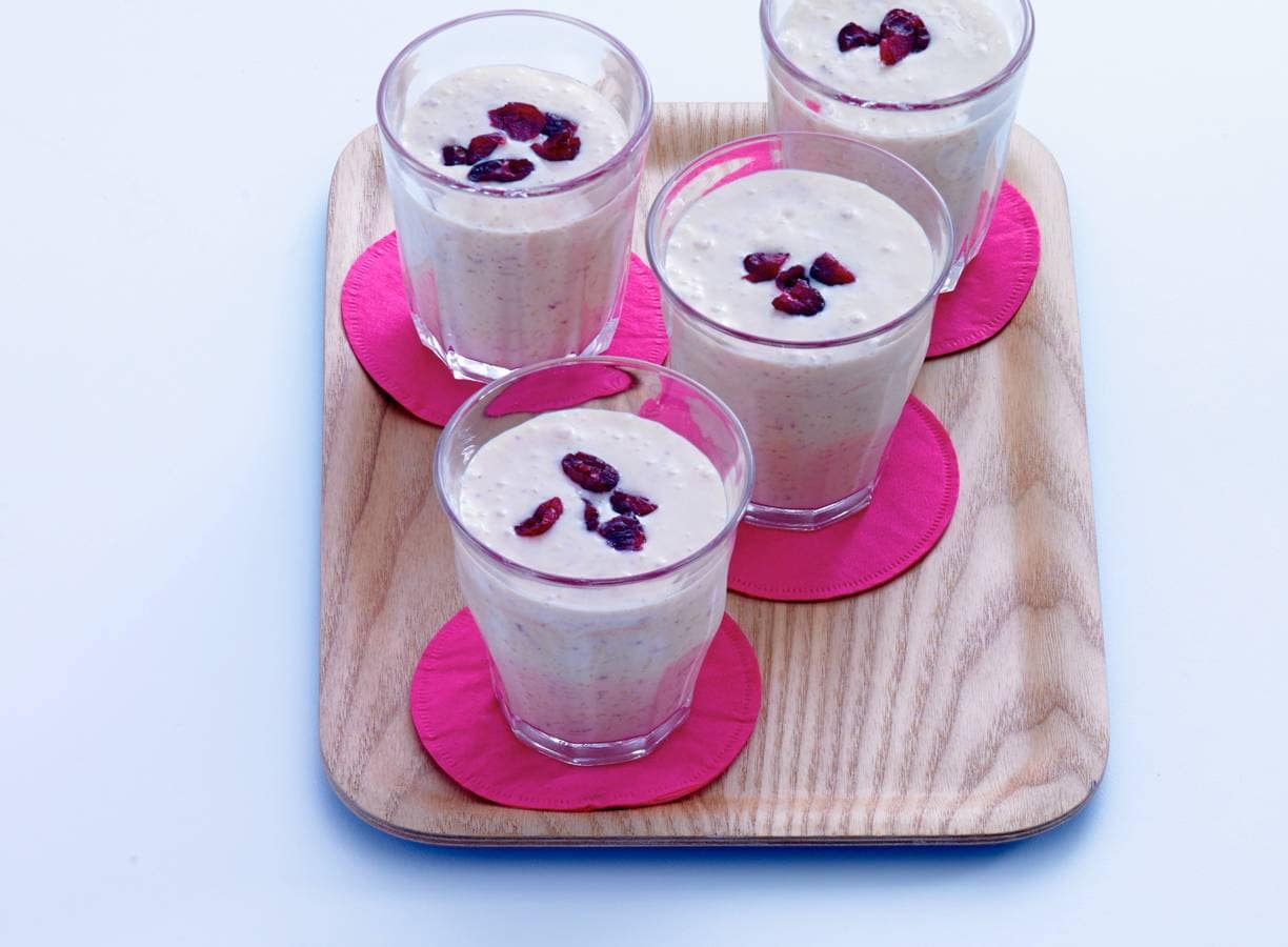 Bewaar wat cranberry’s en strooi ze erover. Voilà: een prachtdrankje vol fruit.