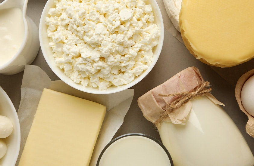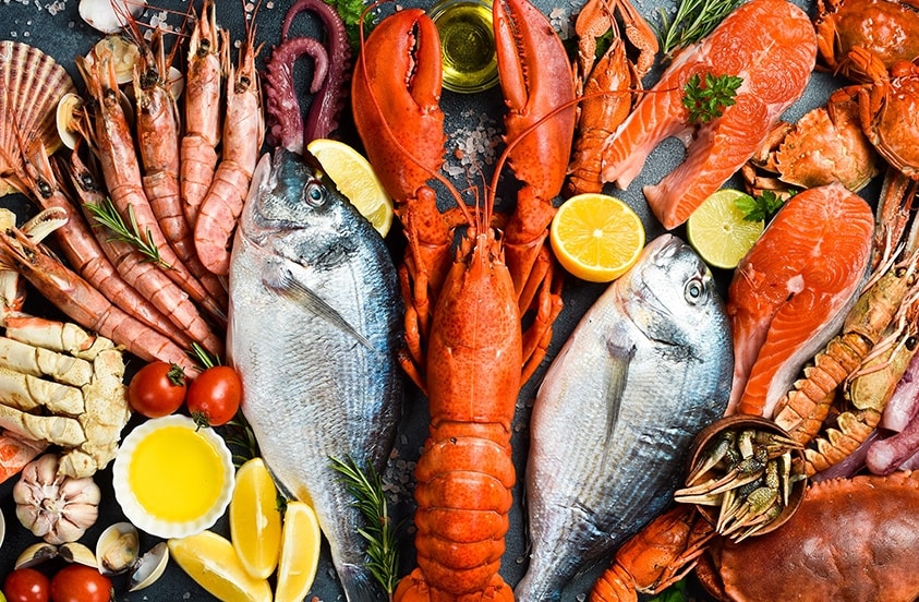 Peulvruchten, zuivel, vlees en vis