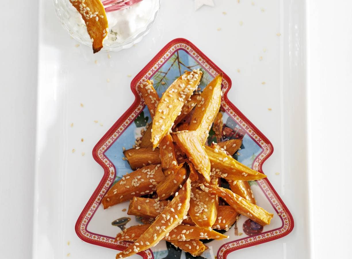 Je blíjft deze zoete frieten dopen in de romige kaasdip. Moeilijk om vanaf te blijven!