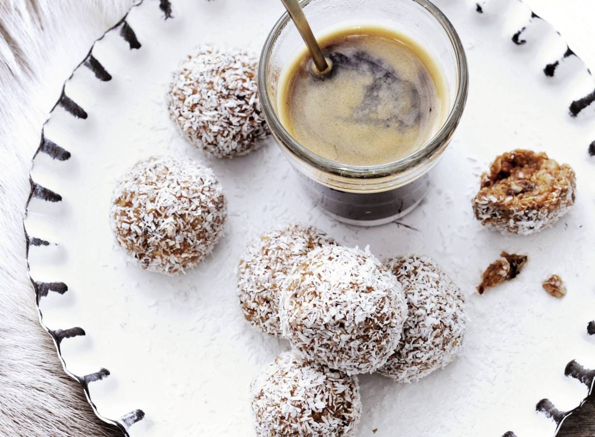 Rol met je handen balletjes van het mengsel ter grootte van een walnoot. Leg de kokos in een diep bord. Rol de balletjes erdoor tot ze rondom met kokos bedekt zijn. Laat ze minimaal 1 uur afgedekt in de koelkast opstijven. Serveer ze bij een kop koffie.