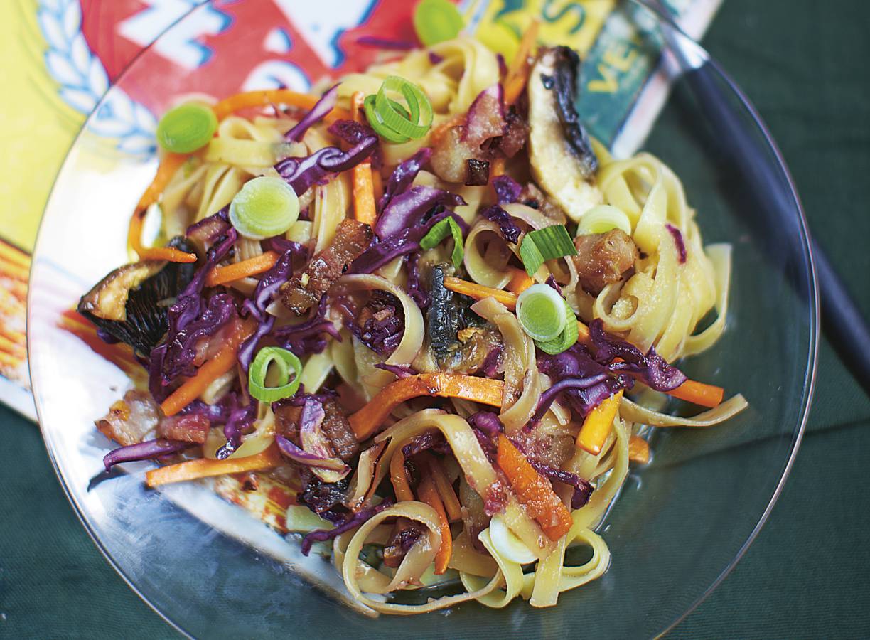 variatietip:In plaats van Elzasser platte noodles kun je ook mienestjes gebruiken.