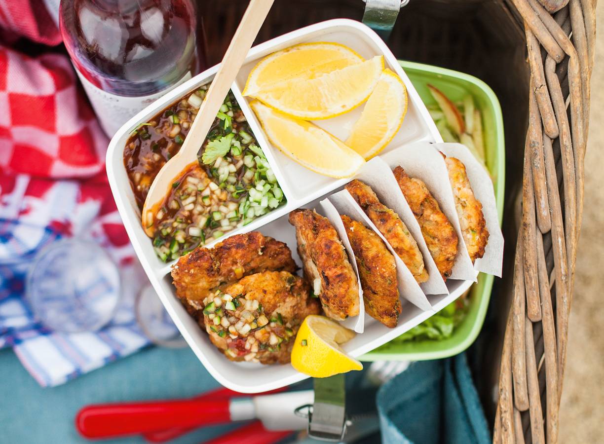 Laat uitlekken en afkoelen op keukenpapier. Eet ze koud of verwarm ze kort op de barbecue. Serveer met de chilisaus.