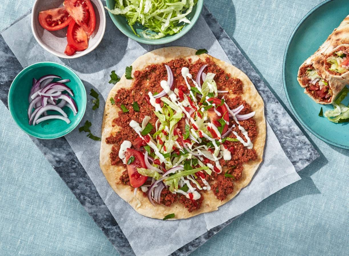 Wist je dat Turkse pizza in het Tursk lahmacun (lach-ma-djoen) heet? In Turkije serveren ze de lahmacun vaak open en snijden ze 'm in vieren. In Nederland wordt de Turkse pizza meestal opgerold.