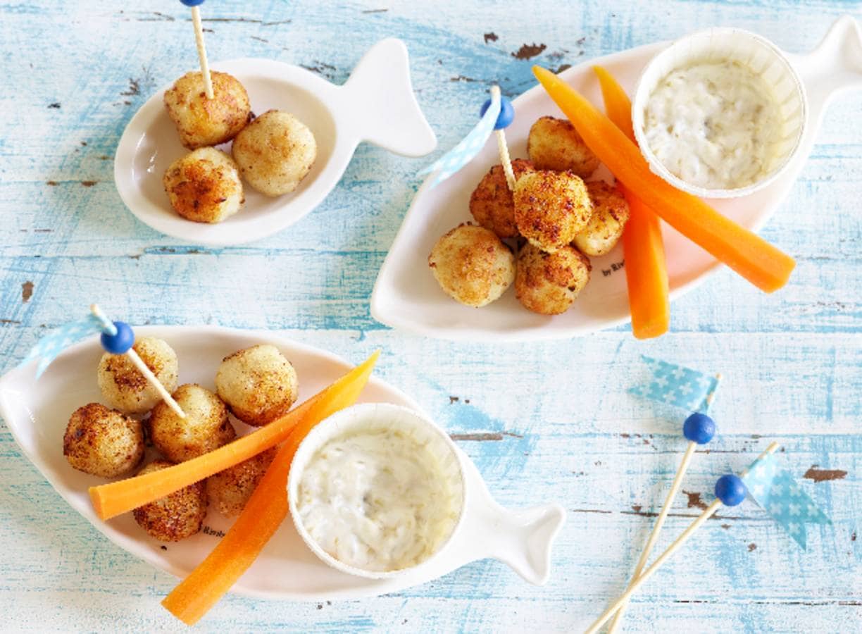 Voor kleine visfans: grappige balletjes met een fris sausje erbij.