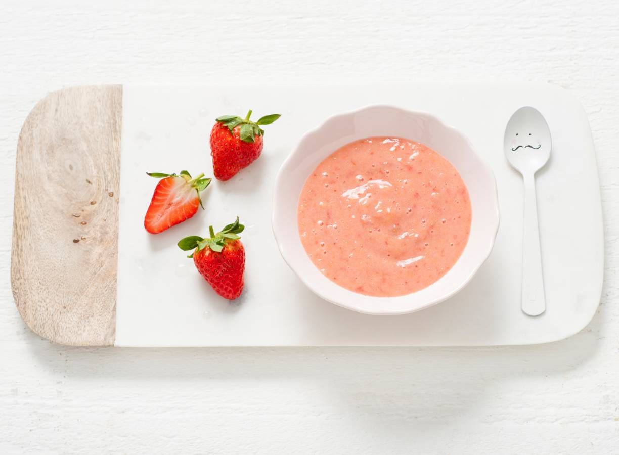 Perzik-aardbeienhapje - 6 tot 8 maanden (Opperdepop)