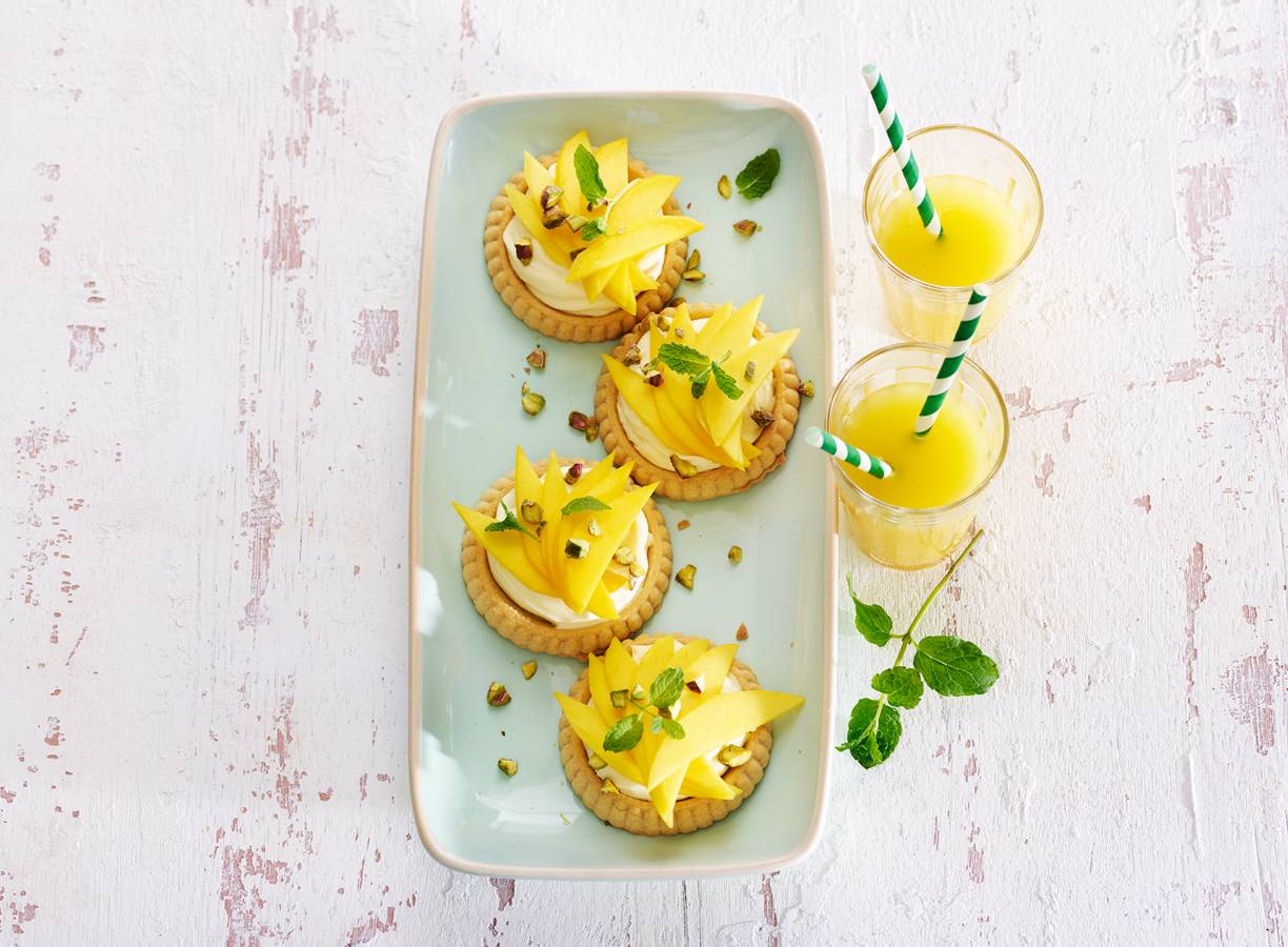 Snelle taartjes met mascarpone-lemon curd & mango