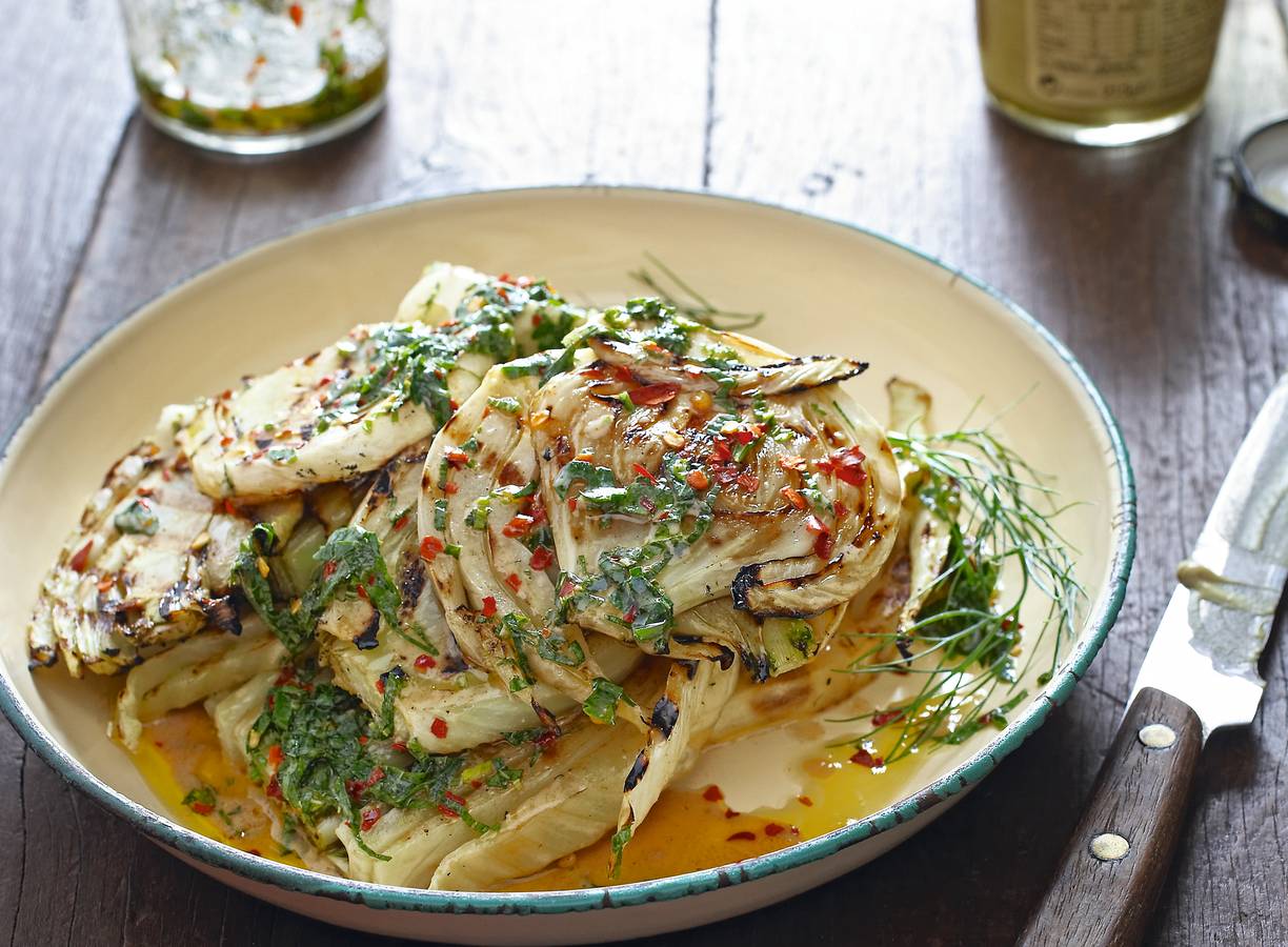 Ross Dobson's gegrilde venkel met kruidendressing