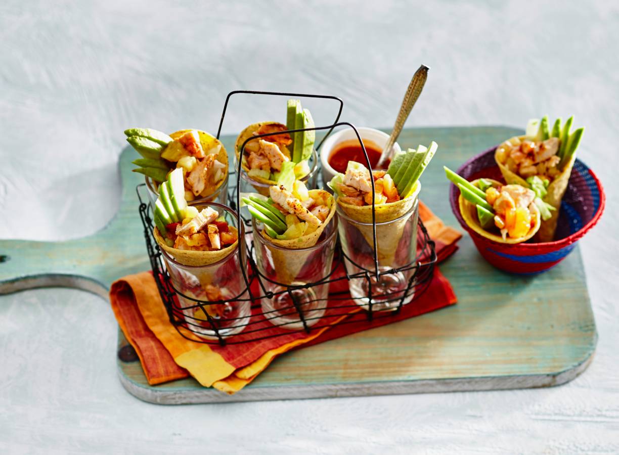 Tacocones met kip en ananas