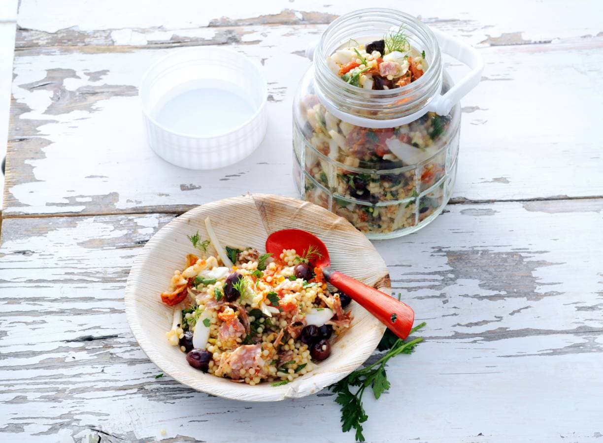 Parelcouscous met salami en venkel