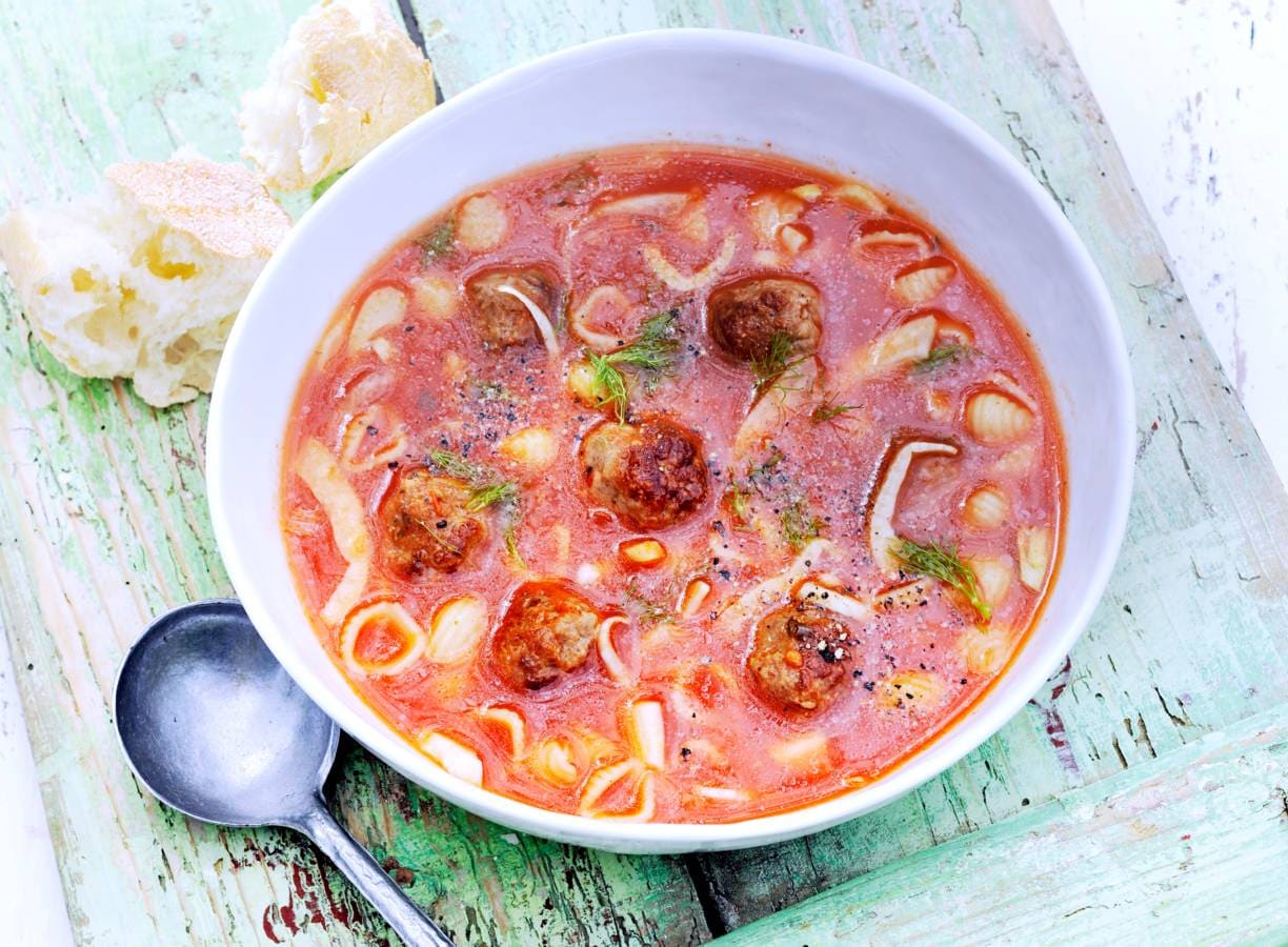 Tomaten-venkelsoep met balletjes