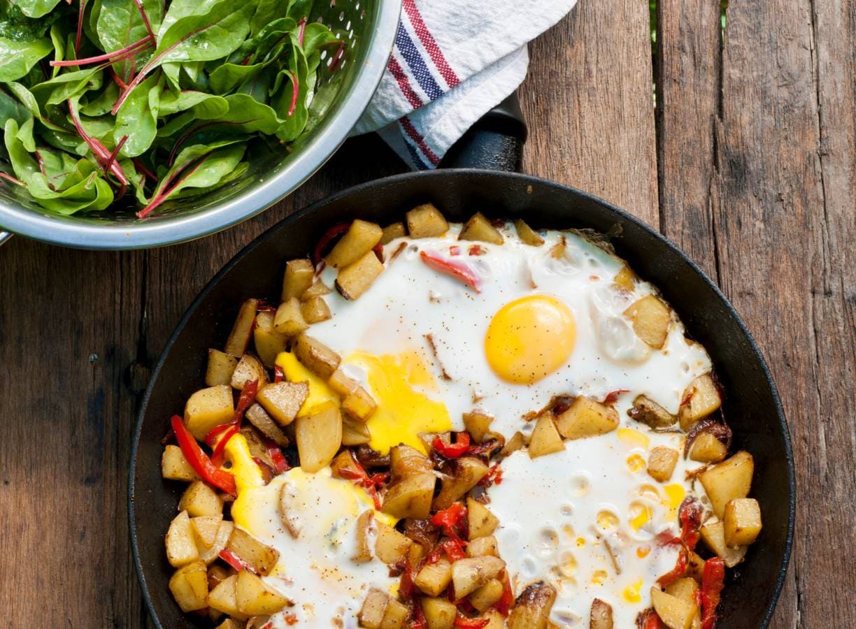 Amerikaanse rösti, deze keer met aardappelblokjes in plaats van geraspte aardappel. Heerlijk als ontbijt, lunch- of avondmaaltijd.