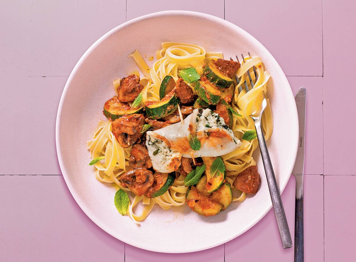 Supercombi: kip met kaas, courgette en heerlijk verse tagliatelle.
