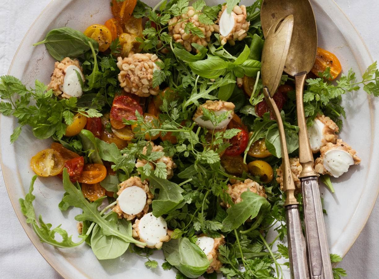Mozzarella en basilicum gaan altijd goed samen. De kruidensalade geeft hun relatie een extra boost.