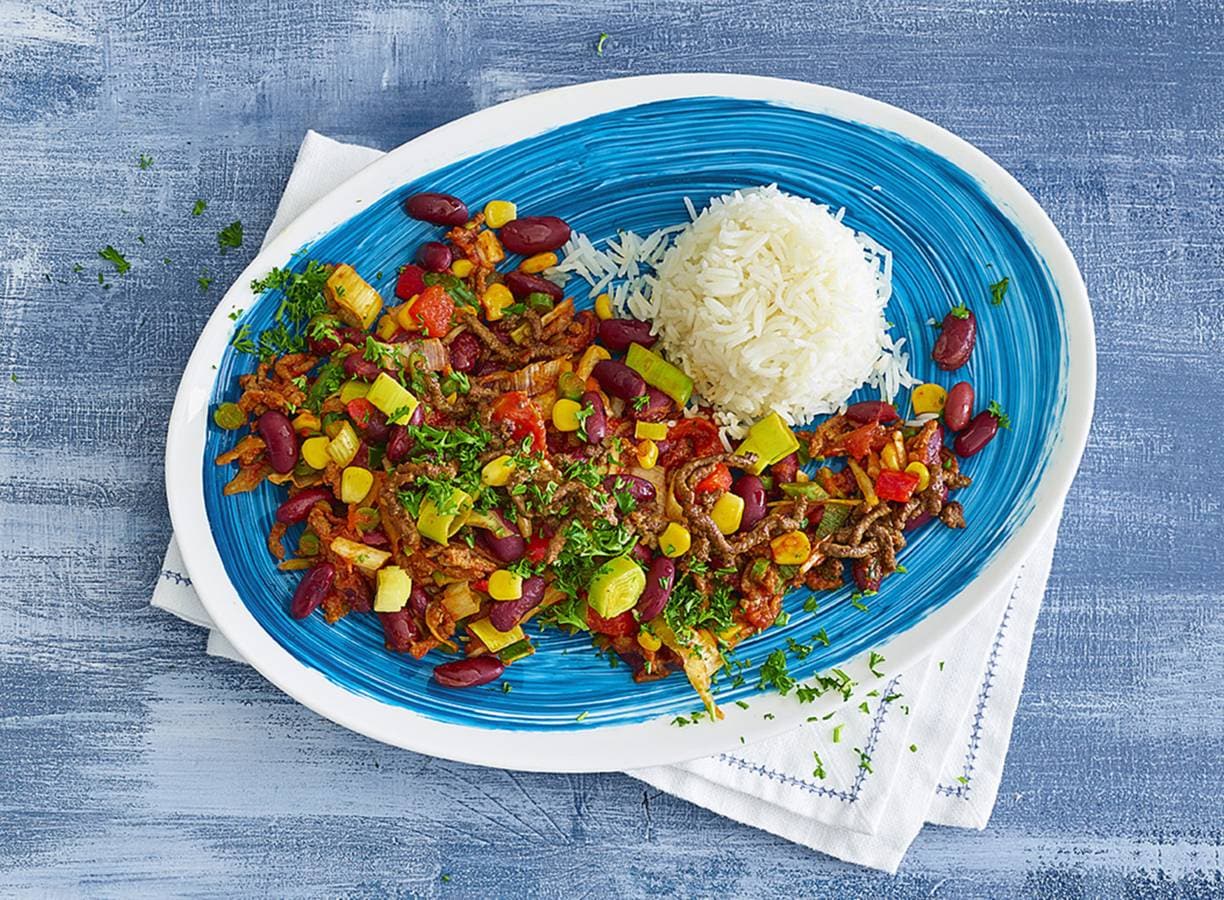 Chili con carne met rijst & koffietwist