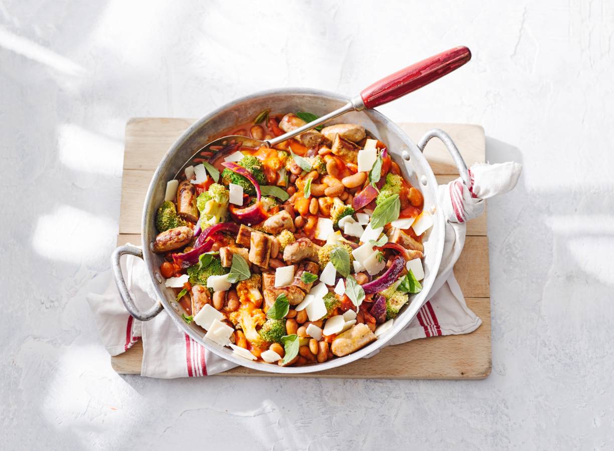 Bonen-tomatenstoof met rozemarijn & chipolataworstjes