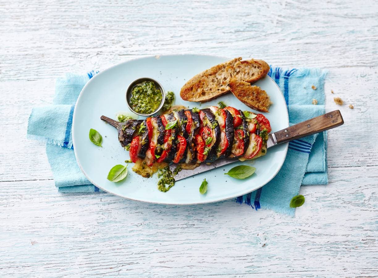 Fan van salade caprese? Probeer dan eens deze variant met aubergine uit de oven.