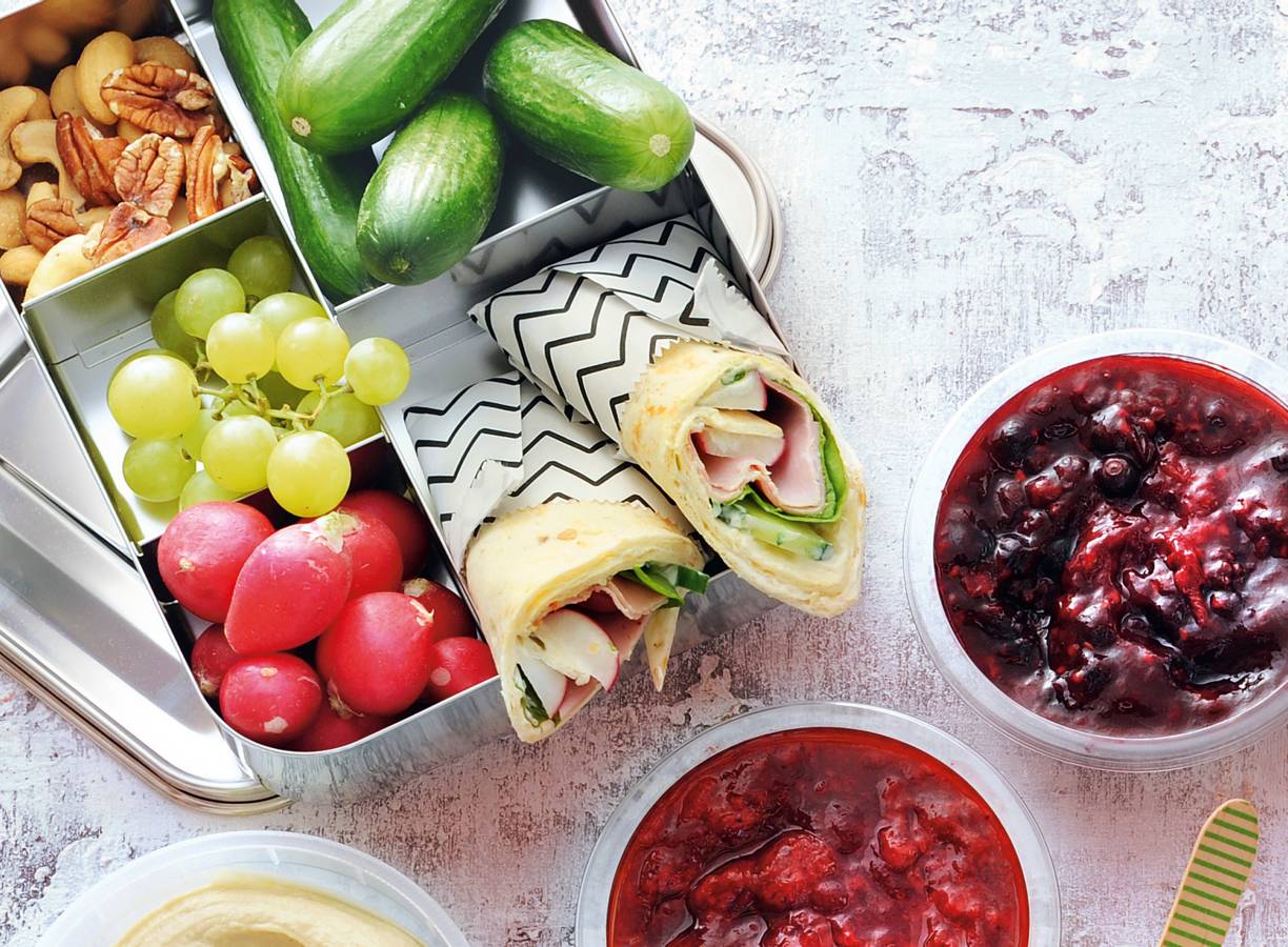 bewaartip:Radijsjes en komkommer over? Geef ze mee in de broodtrommel. Snijd de komkommer wel eerst in dikke plakken.