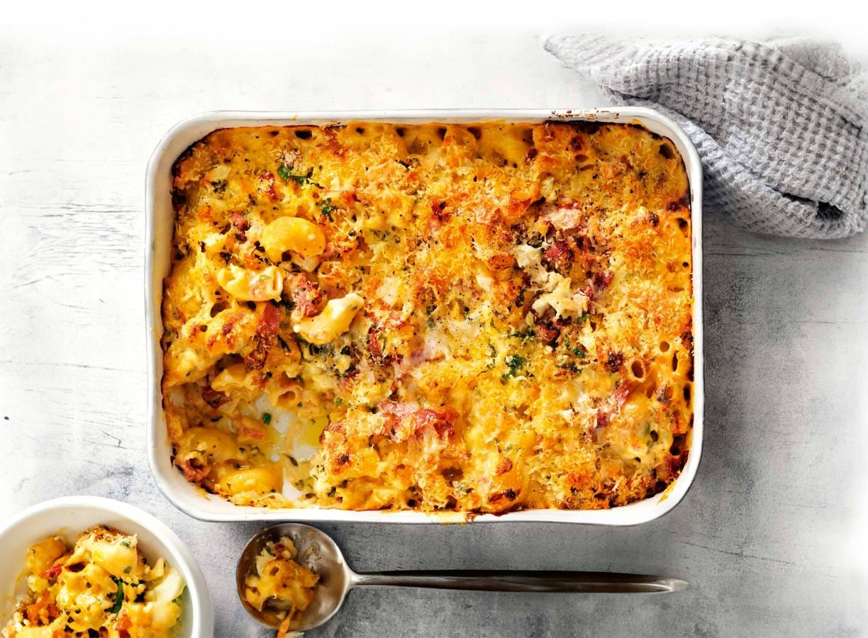 Meng de rest van de kaas met de panko en bestrooi de pasta ermee. Bak ca. 25 min. in het midden van de oven tot de kaas goudbruin is.