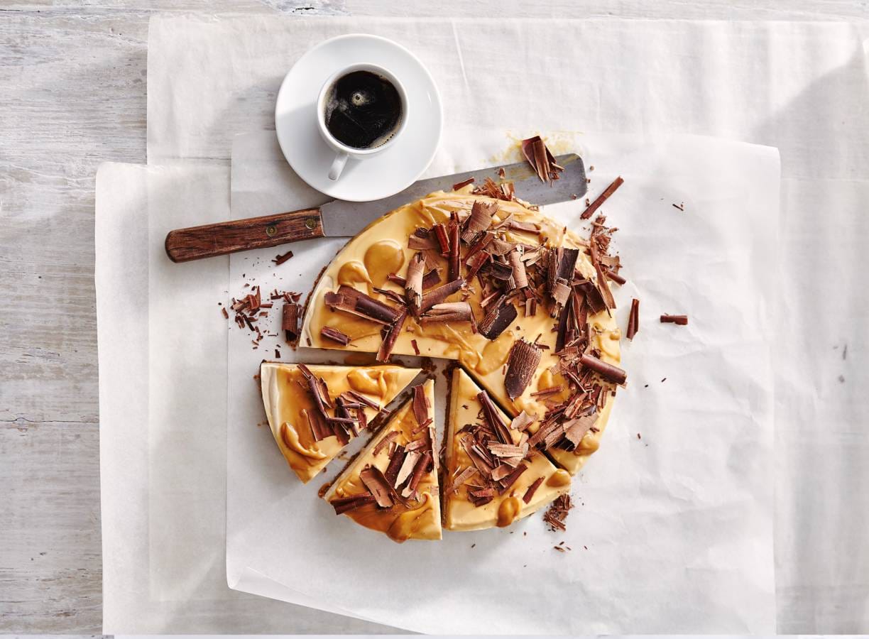 De pittige koffie gaat in deze taart perfect samen met de chocolade en fluweelzachte karamel.