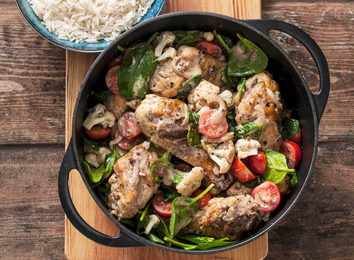 bereidingstip:Je kunt deze kipstoof 1 dag van tevoren maken. Bewaar afgedekt in de koelkast. Verwarm voor serveren 6 min. op laag vuur en voeg op het laatste moment de spinazie toe.