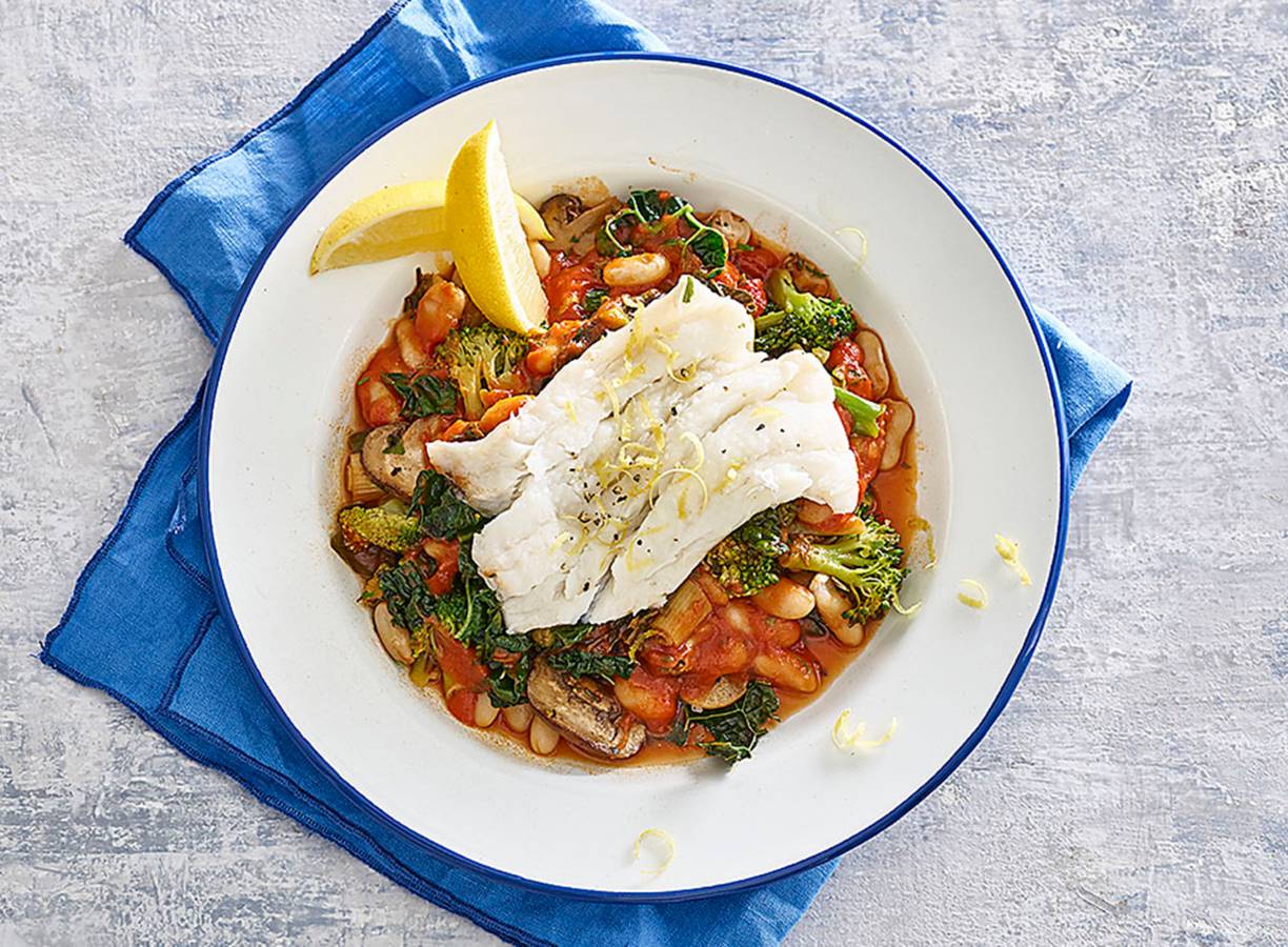 Mediterrane bonenstoof met cavolo nero en kabeljauw