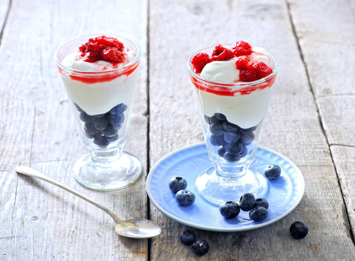 Een toetje met niet alleen de kleuren van de Nederlandse vlag, maar ook met de Hollandse blauwe bes.