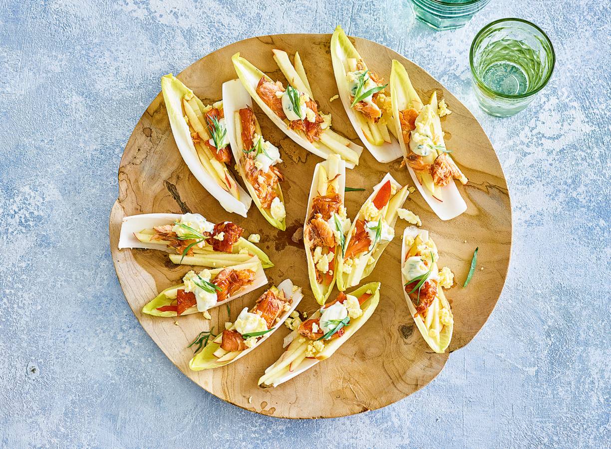 Zalm, witlof en frisse appel: deze hapjes moet je gewoon eens proberen.
