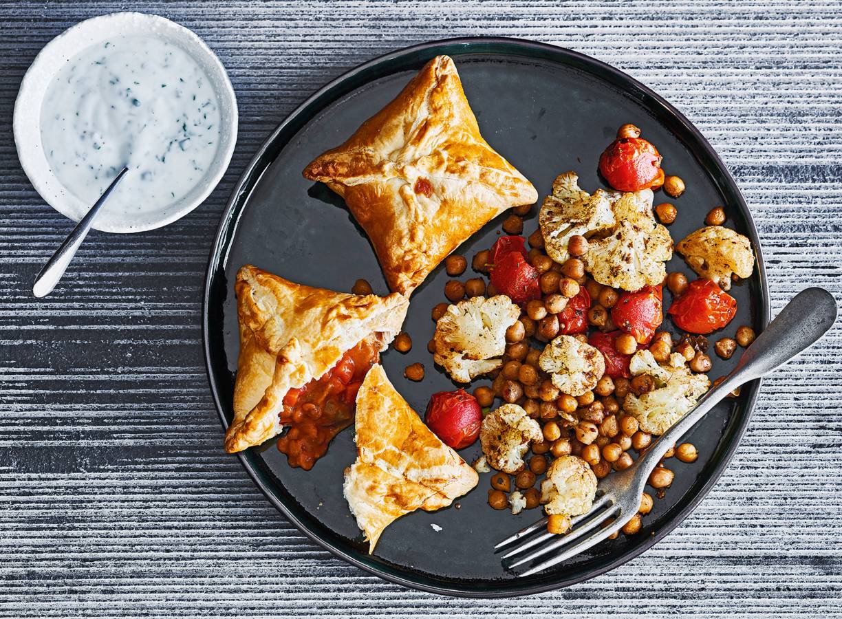 Pasteitjes van bladerdeeg en linzen. Heerlijk met die groenten met garam masala.