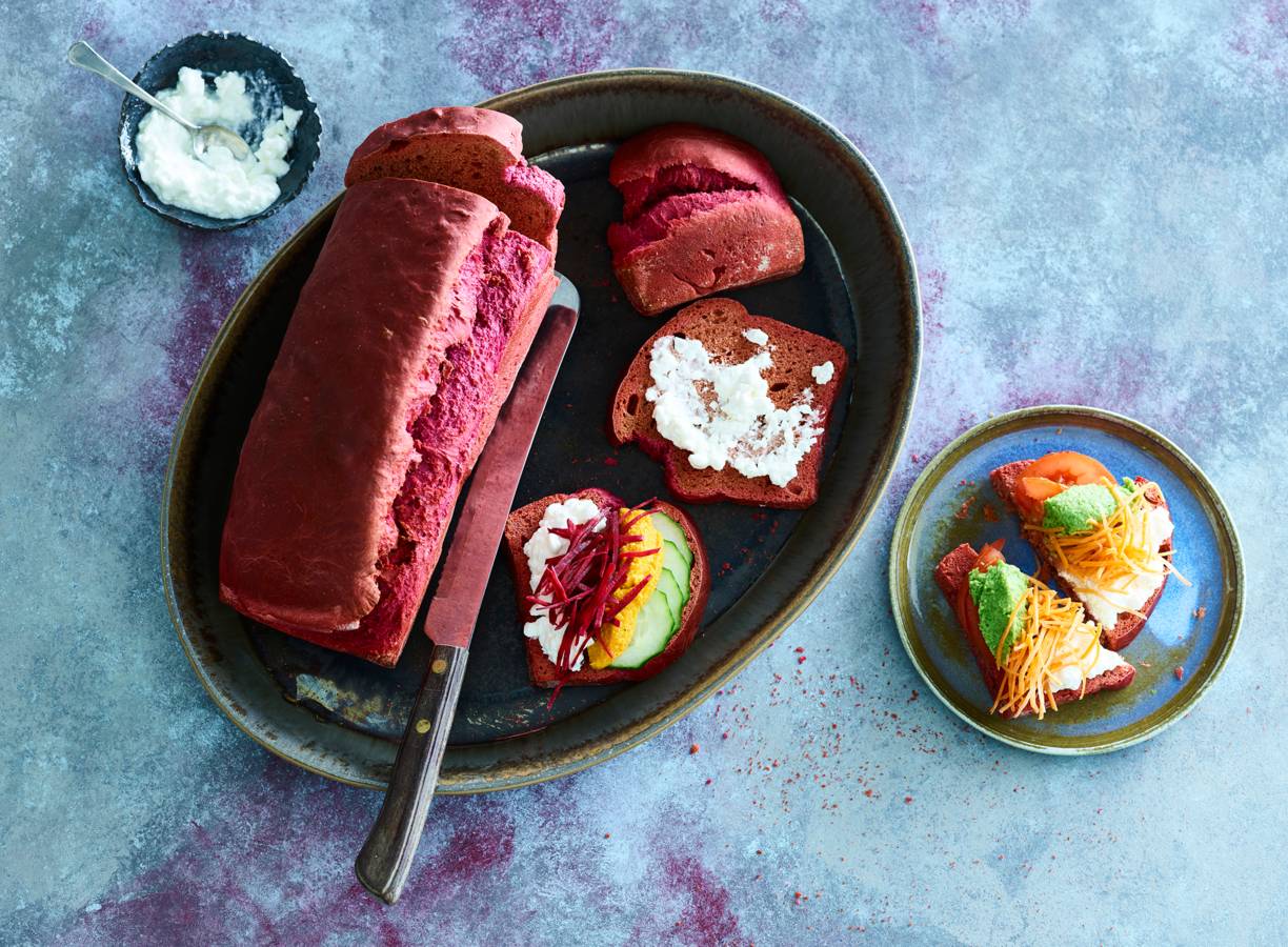 Rainbow sandwiches met zelfgemaakt bietenbrood