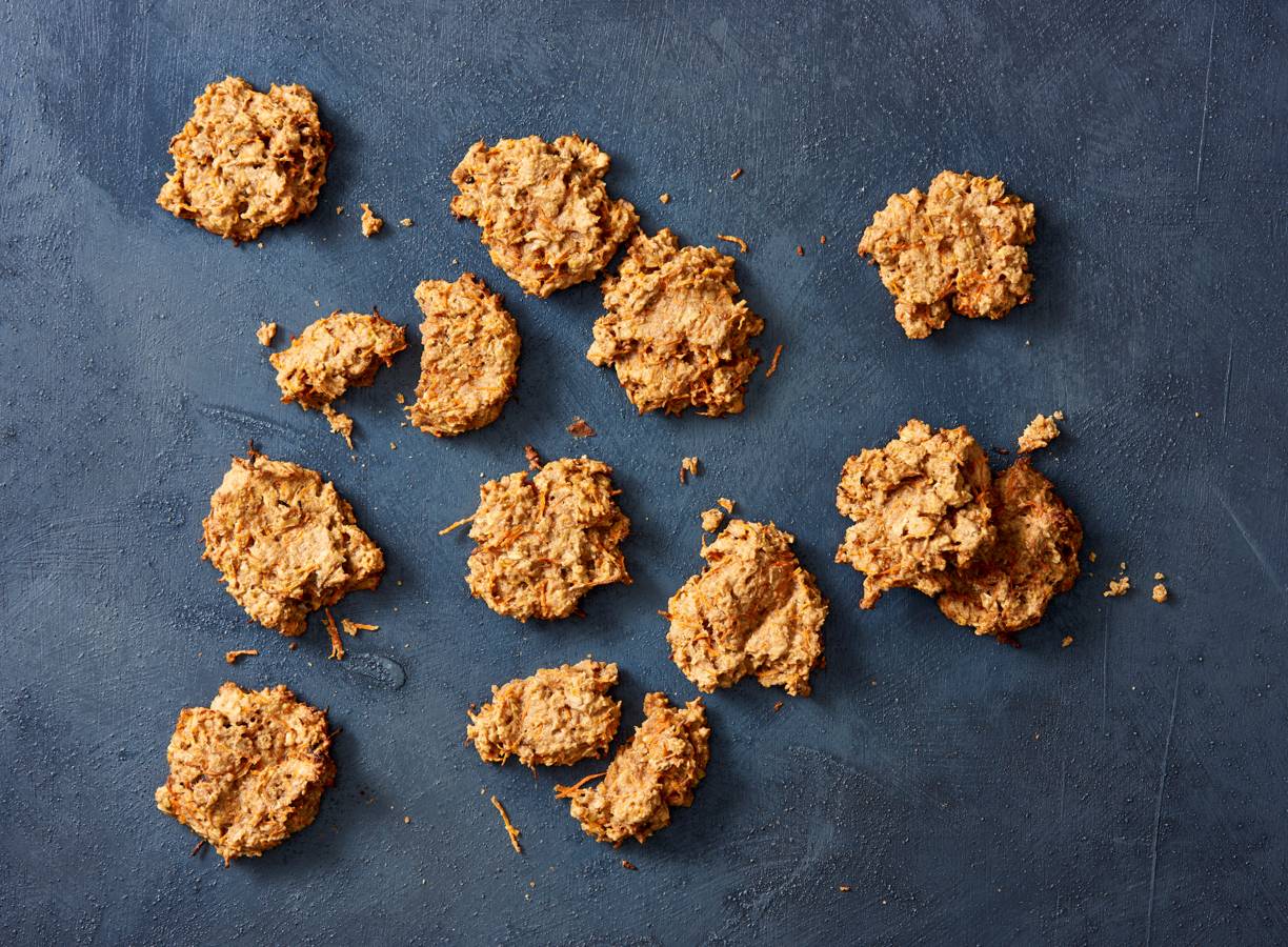 Verwarm de oven voor op 200 °C. Meng in een kom alle ingrediënten tot een samenhangend beslag. Maak met twee lepels 14 hoopjes van het beslag op een met bakpapier beklede bakplaat. Druk ze met een lepel een beetje platter. Bak de koekjes in ca. 10-12 min. goudbruin en gaar. Laat afkoelen.