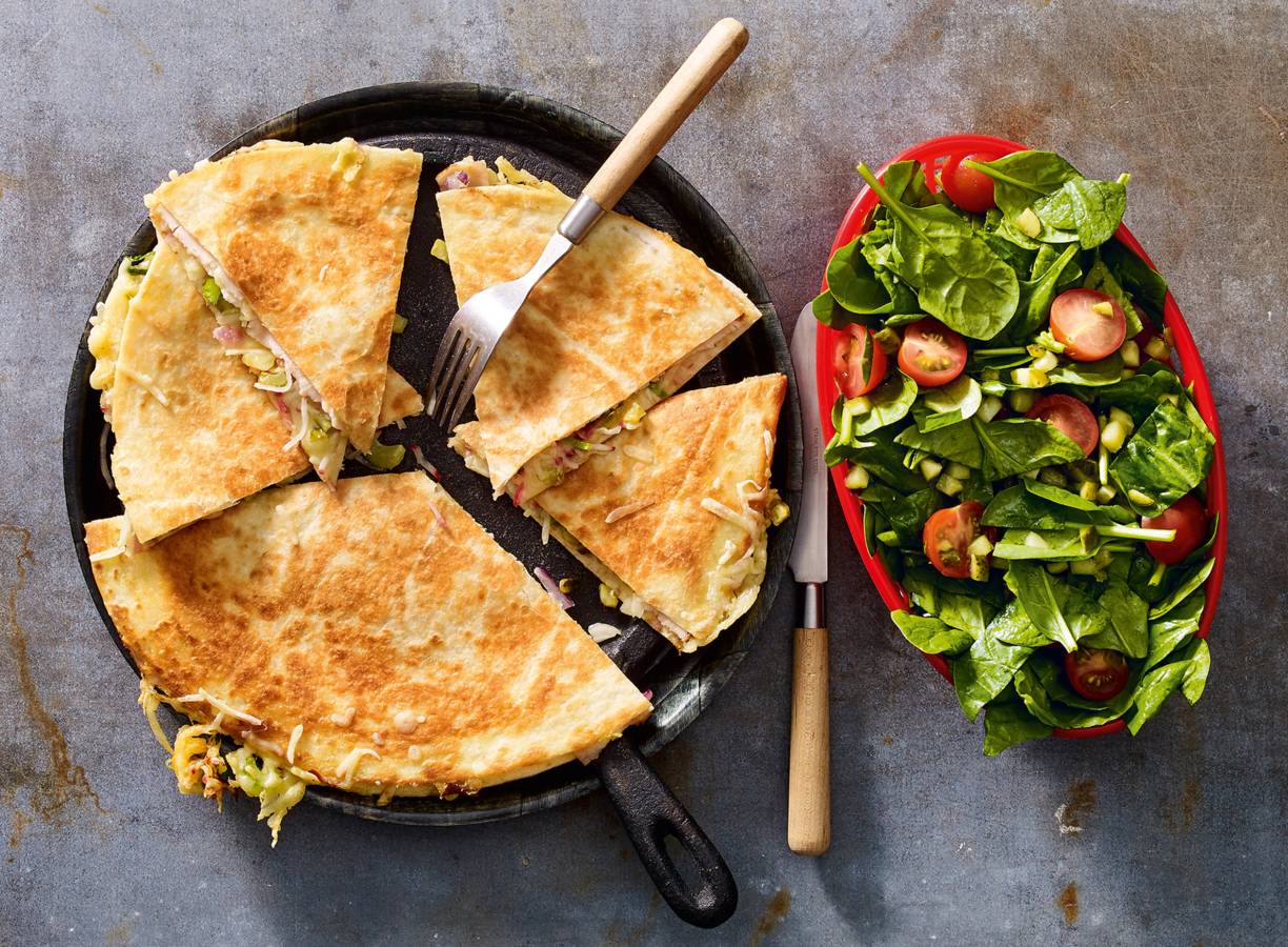 De Mexicaanse quesadilla in een Hollands jasje met radijs, augurk en belegen kaas.