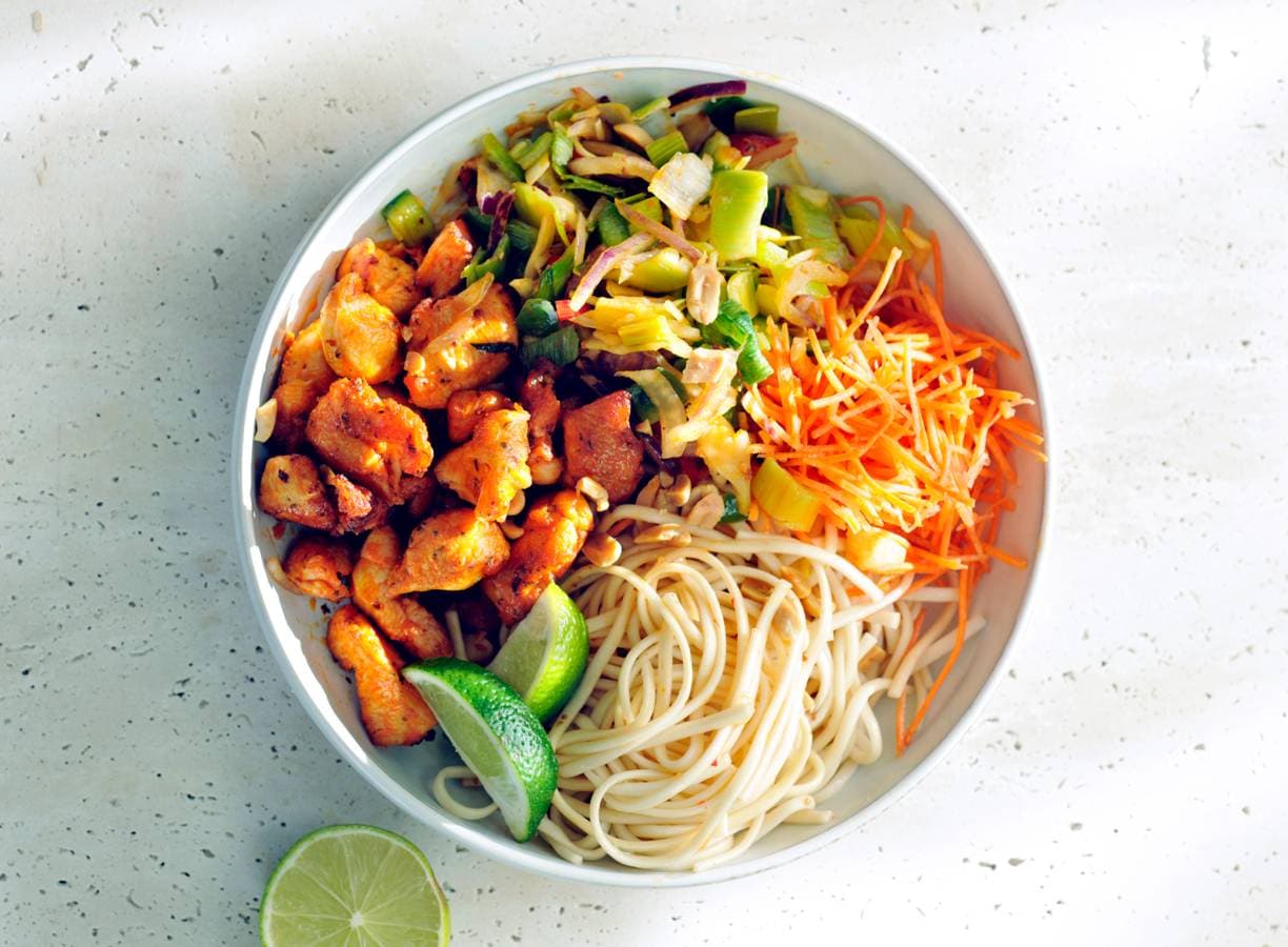 Aziatische kip met pittige noedelsalade