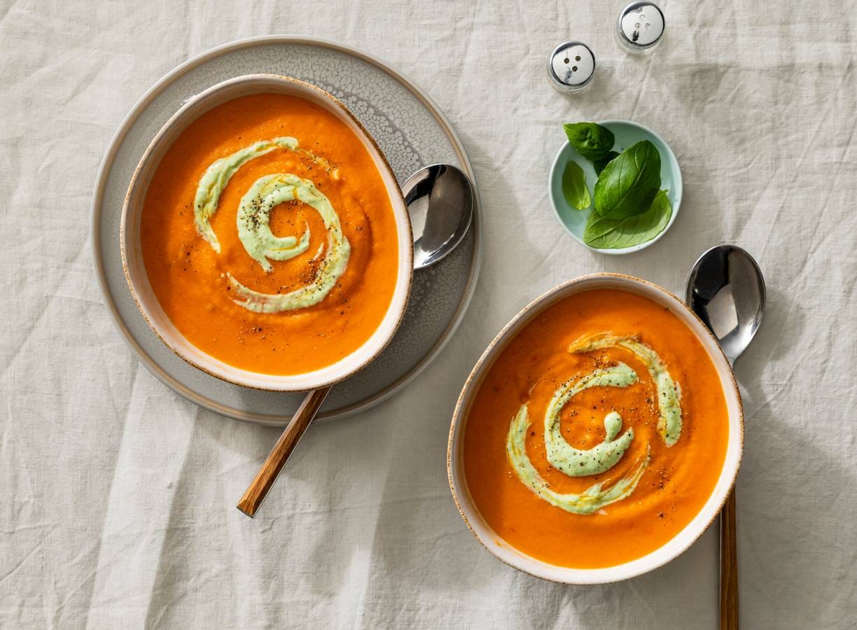 Tomaat én pompoen, een echt herfstig duo die goed combineren in deze geroosterde pompoen-tomaatsoep.