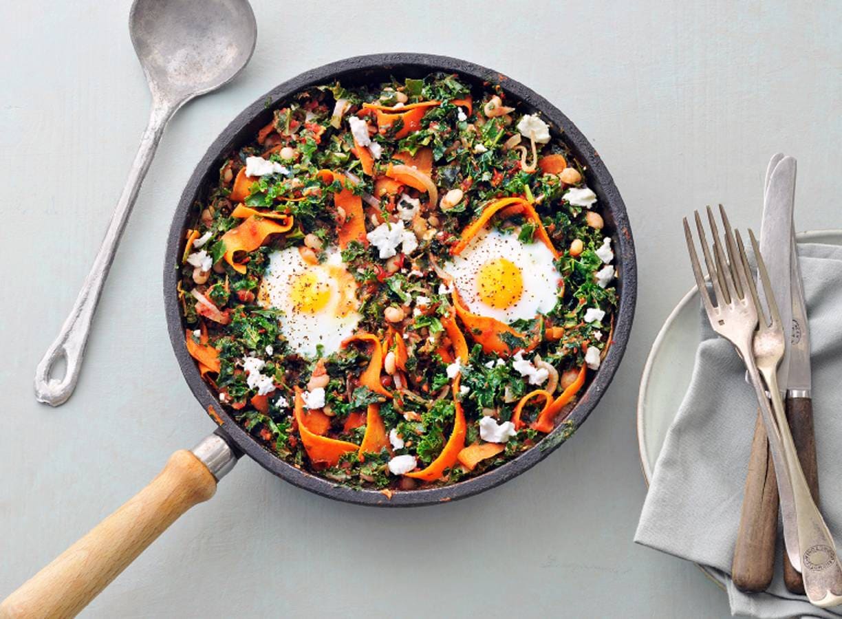 Met dit Midden-Oosterse gerecht kun je eindeloos variëren, vanavond met peen, boerenkool en witte bonen!