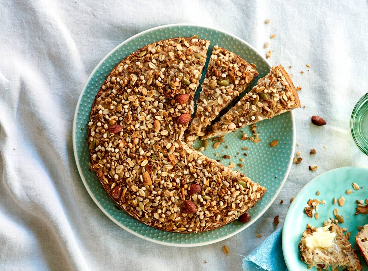 De ontbijtgranen op deze bananentaart zorgen voor een lekkere crunch.