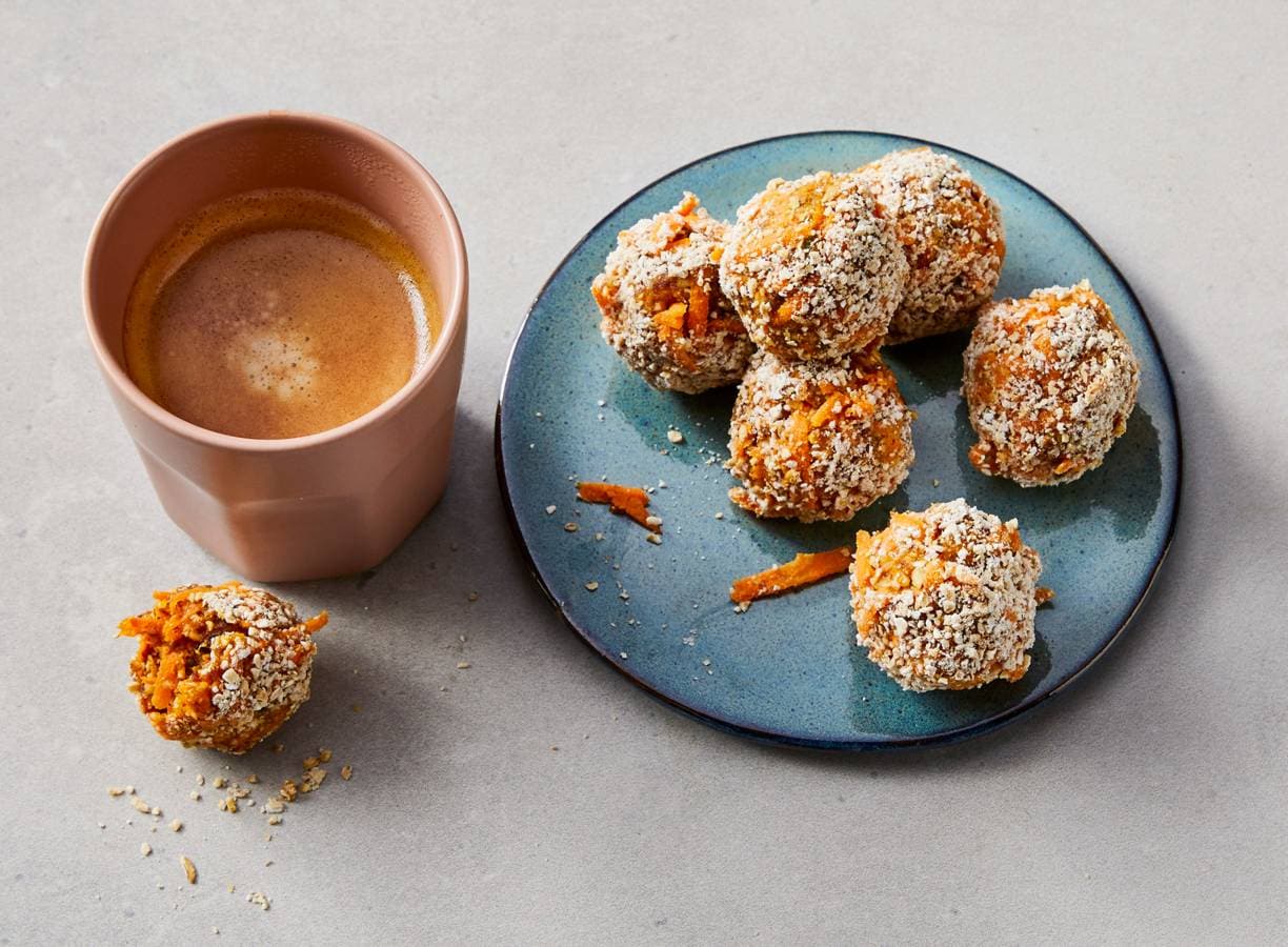 Fan van carrot cake? Snoep 'm als tussendoortje met deze gezonde zelfgemaakte carrotballs.