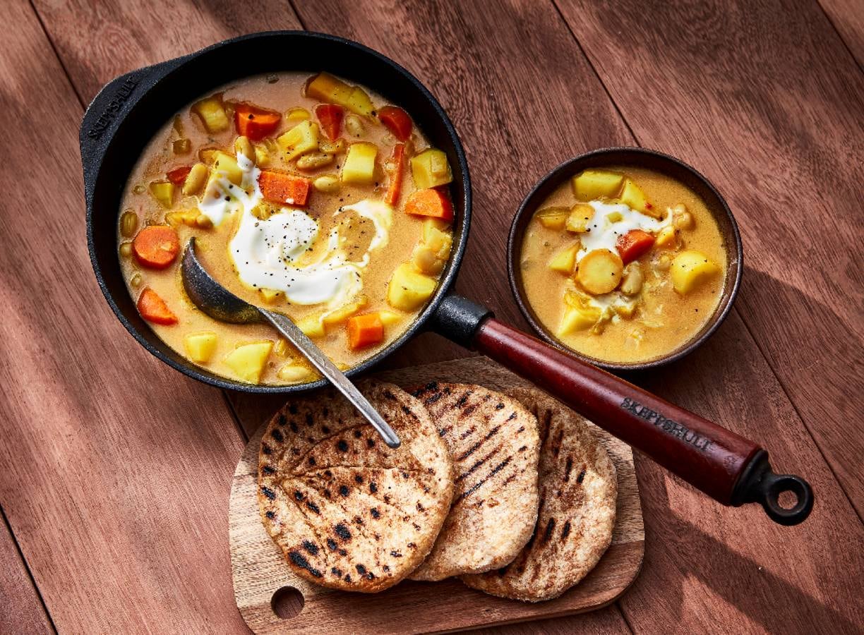 Echt herfstig comfortfood = deze vegan curry met zelfgemaakt vegan naanbrood.