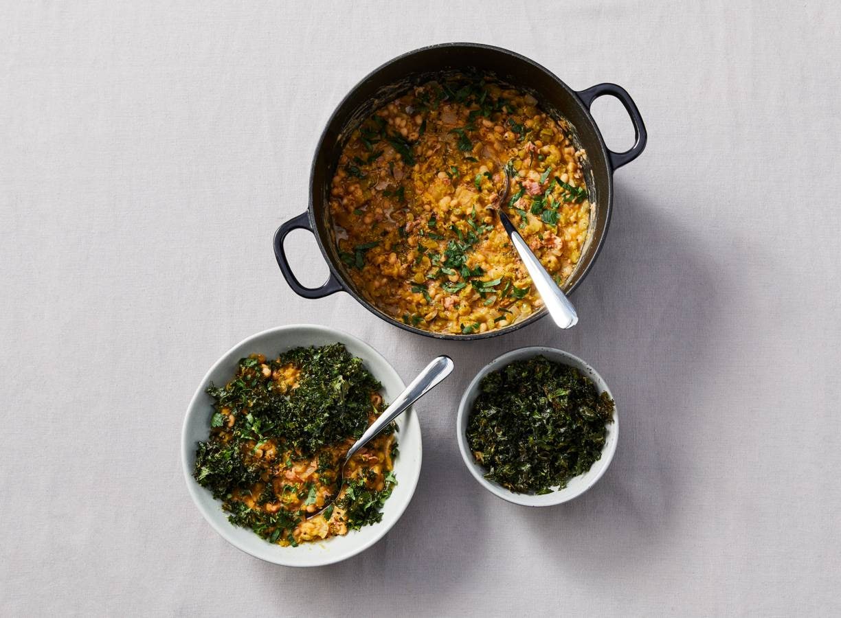 Bonenstoof met bacon en geroosterde boerenkool