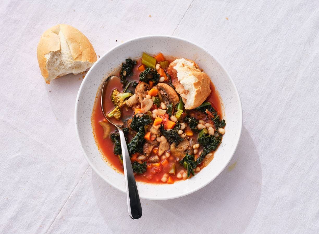Moet je eens proberen: deze zelfgemaakte ribollita, ofwel Toscaanse wintersoep met bonen, cavelo nero en brood.