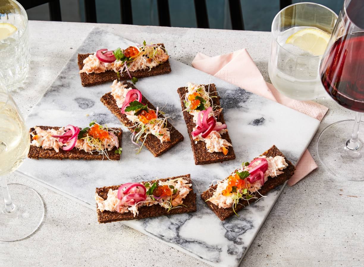 Hap, slik, weg! Van dit gezonde borrelhapje met zalmspread lusten wij er wel honderd.